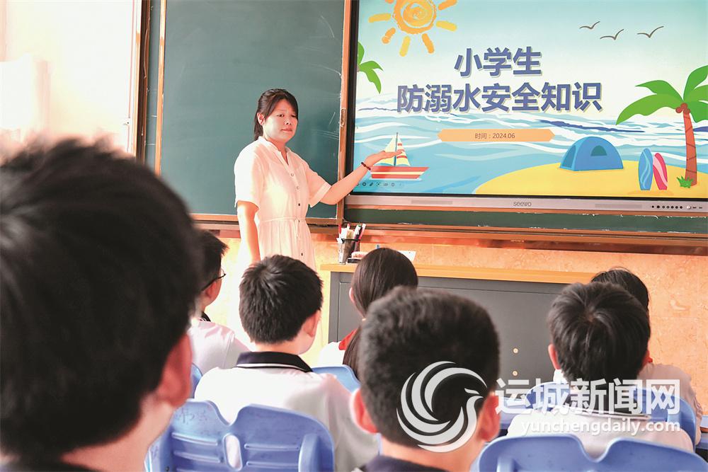 6月27日,垣曲县英言中心校马湾小学的教师向孩子们讲解暑假防溺水安全知识。