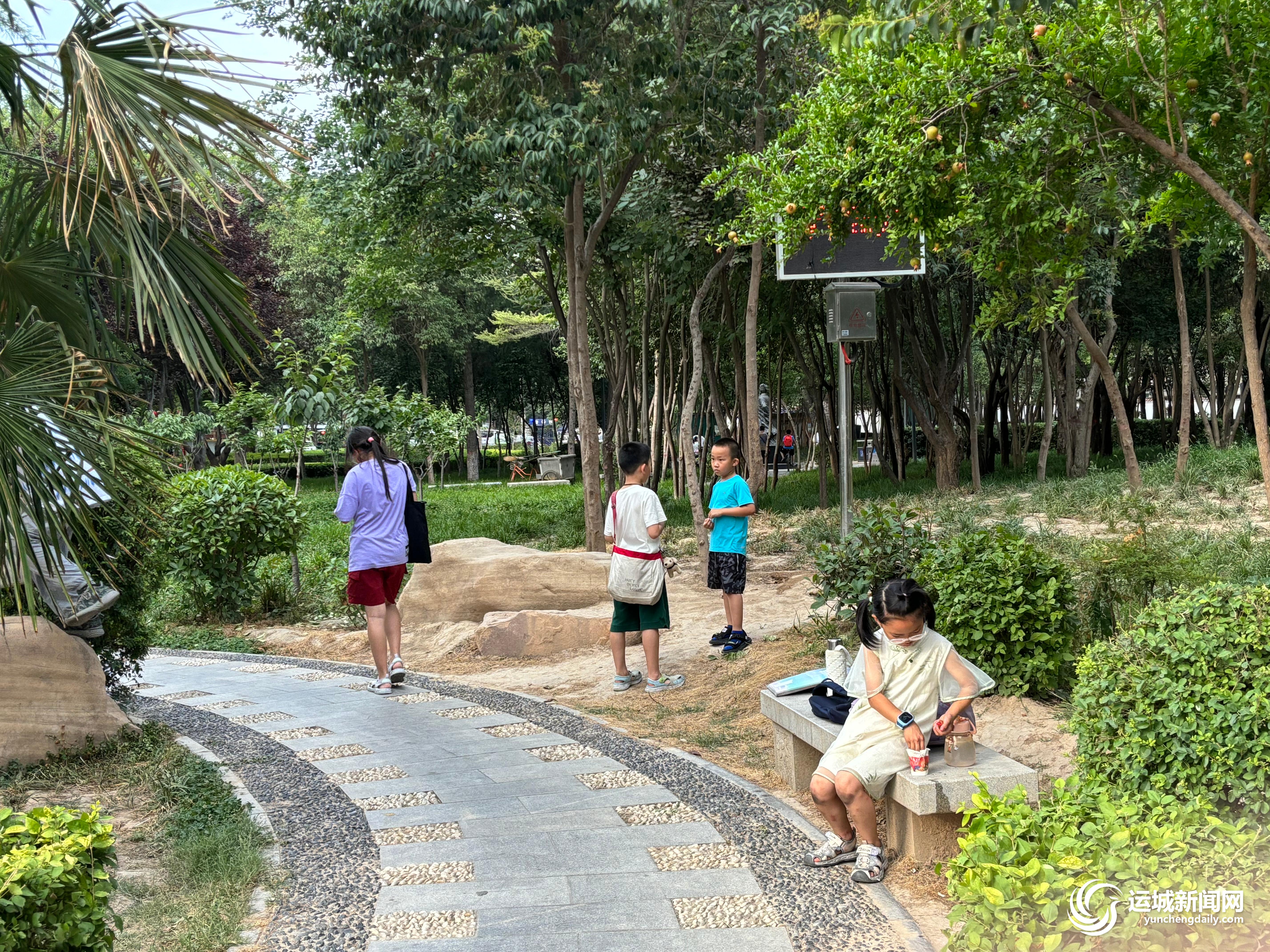 6月24日下午6时左右,伴随着运城市人民路学校的放学铃声响起,各个班级的小朋友在老师的带领下有序离开学校。校门口,接娃的家长已排起了长队,大家翘首以盼,在学生群中“定位”自己的孩子。而距离学校80米左右的“君实园”内,也有一些家长避开放学高峰,在此悠闲地等孩子。