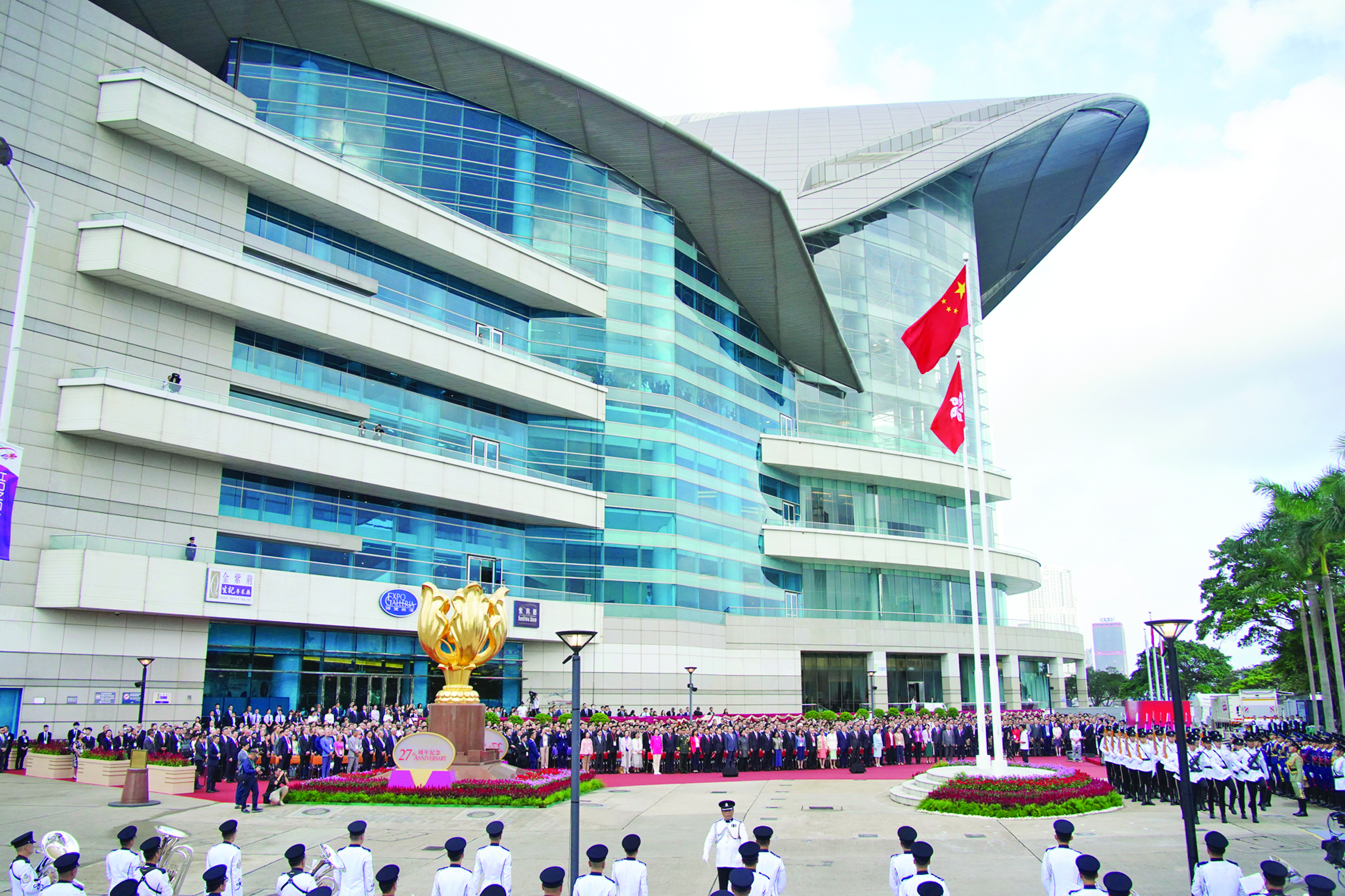 ▲7月1日,香港特区政府在金紫荆广场举行升旗仪式,庆祝香港回归祖国27周年。