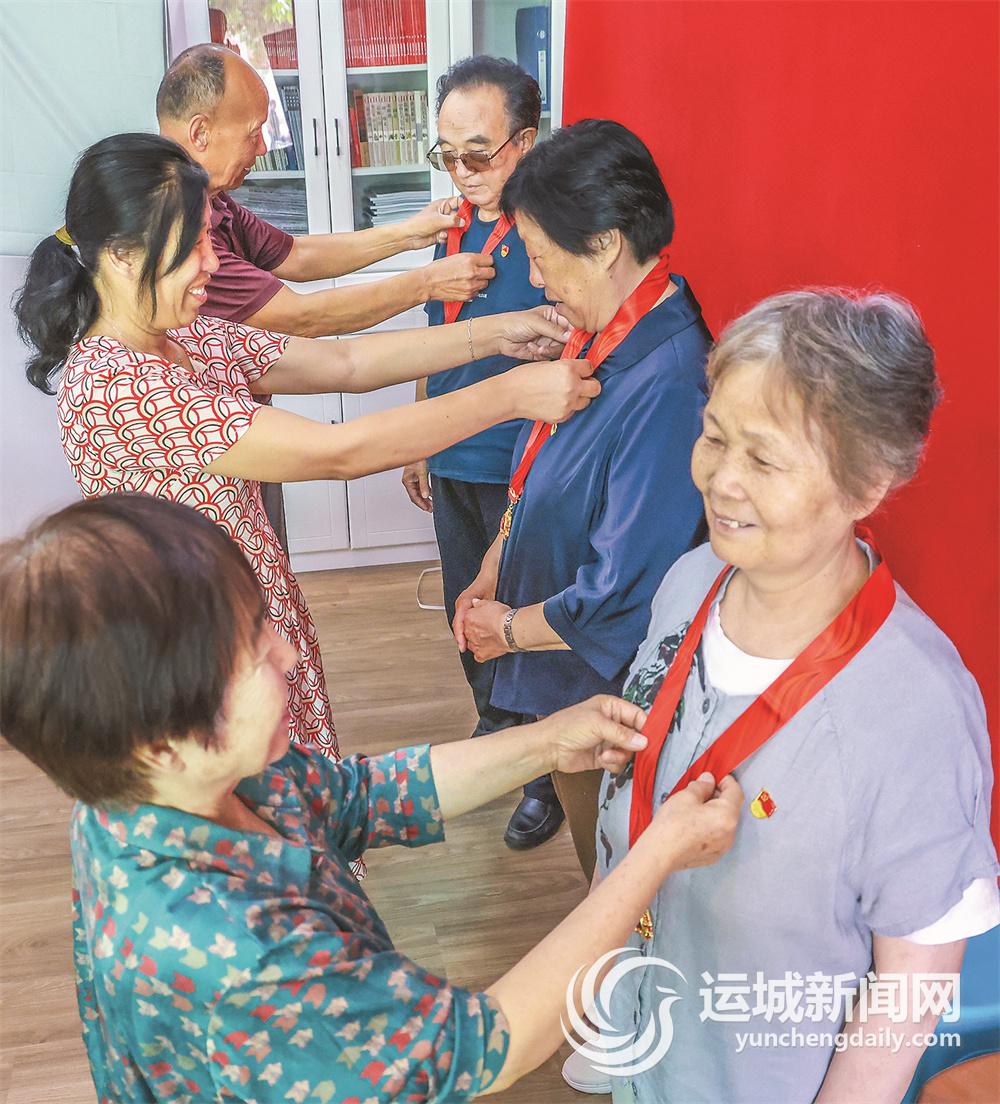 7月1日,夏县城南社区党总支开展“三送”活动,把党的温暖、党的知识、党的荣誉送到老党员家中。 特约摄影 张秀峰 摄