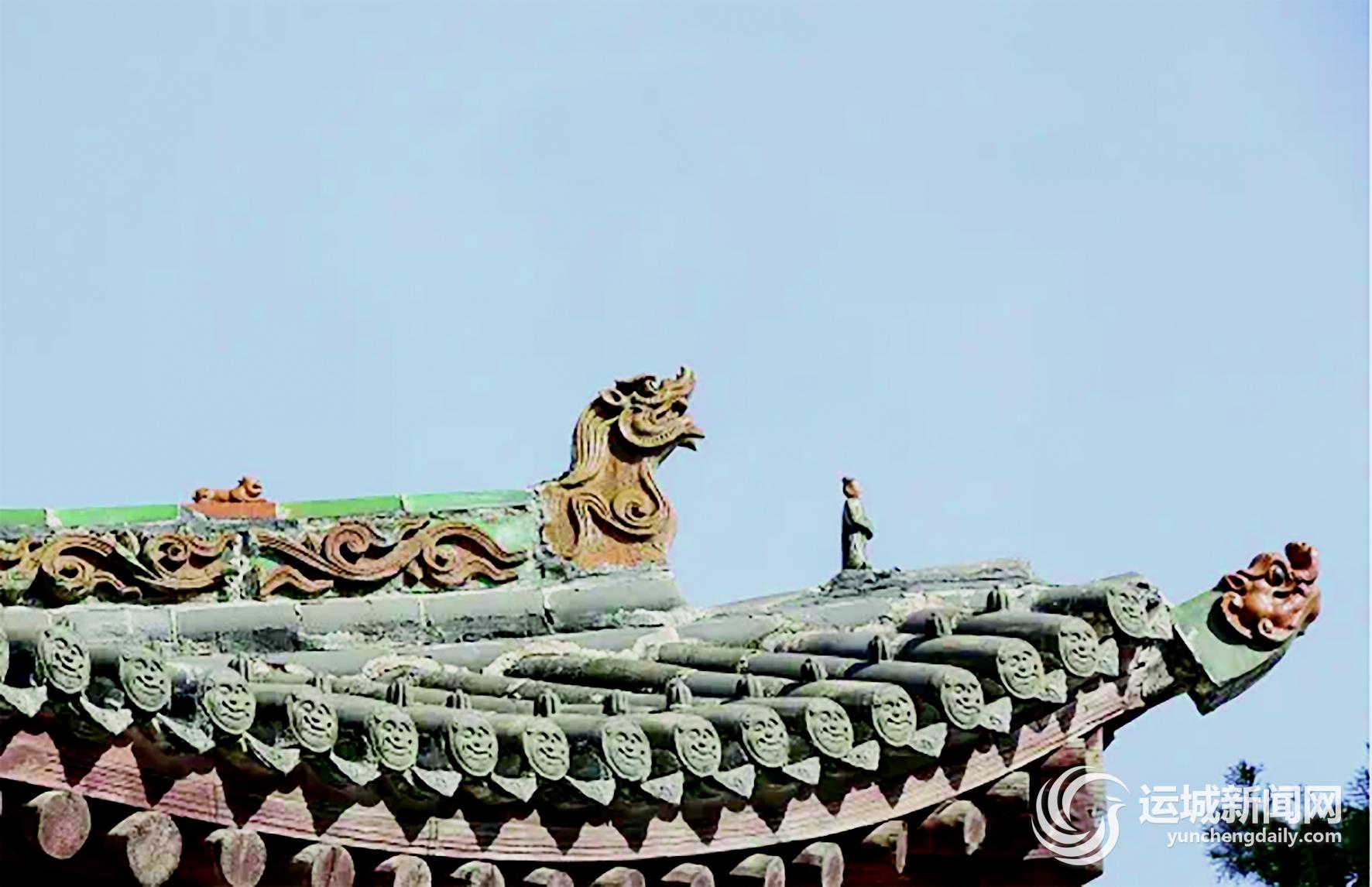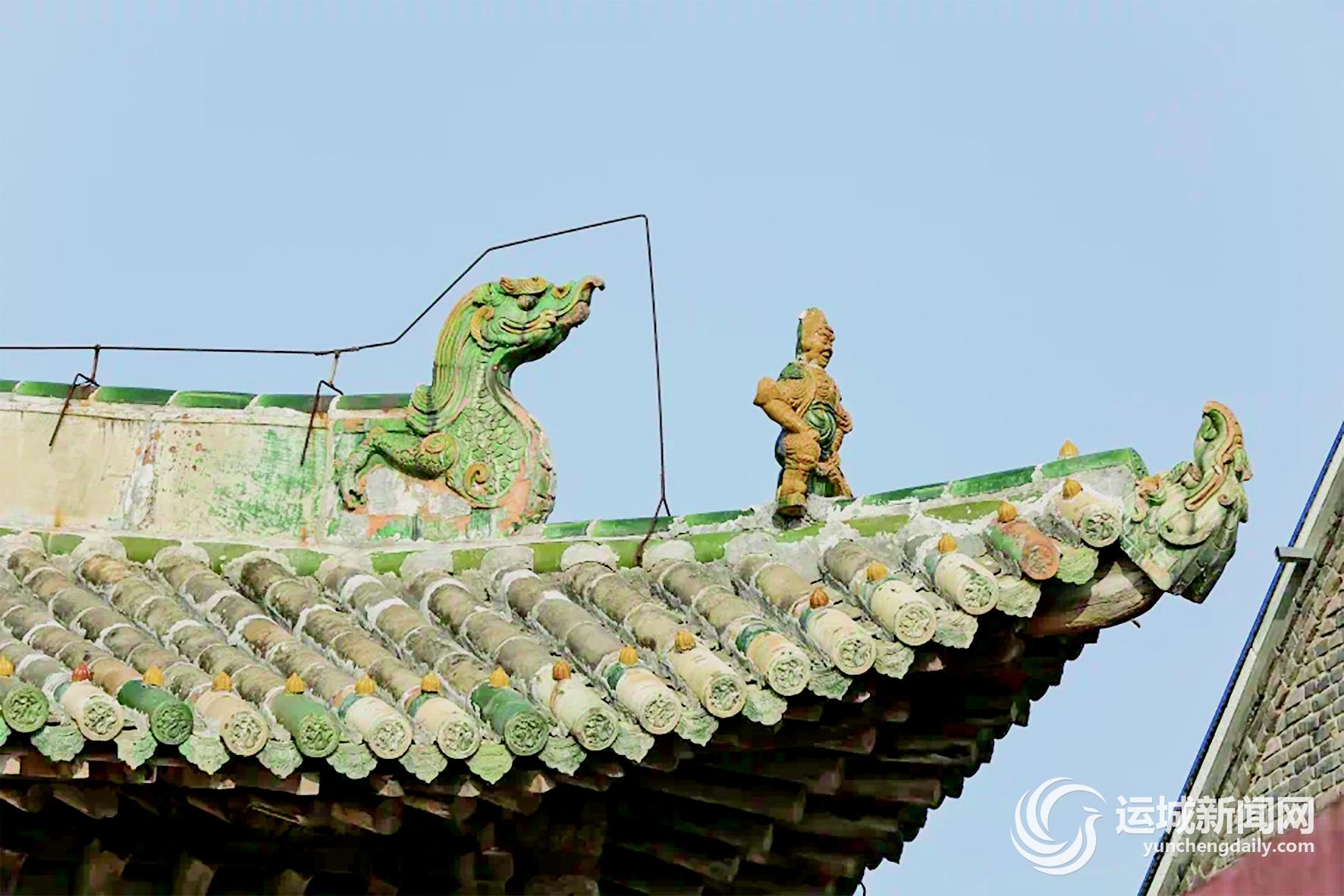 夏县文庙大成殿重建于明成化十三年,殿内采用减柱法。大成殿的琉璃构件是明成化时期的艺术珍品,虽经过五百多年的风雨侵蚀,色釉和完整性都保存较好,是研究明代琉璃烧制工艺、构图技巧、审美风格的珍贵实物遗存。