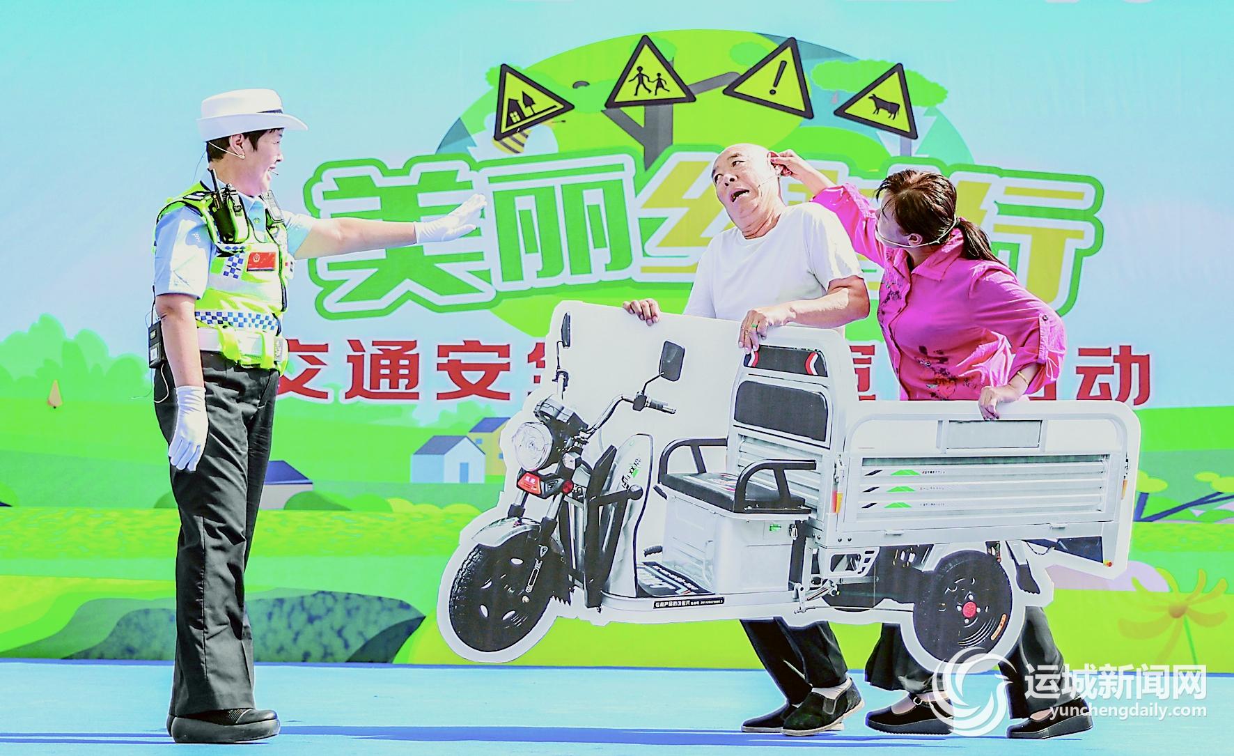 在小品《错哪儿》节目中,3名演员分别扮演交通劝导员、三轮车驾驶人和乘客,“你违法了,三轮车不能载人。”“第一次违法是口头警告,再次违法要处以20元以上200以下罚款的处罚。”生动的表演、发人深思的台词,在寓教于乐间使在场群众学习了交通安全法律法规。