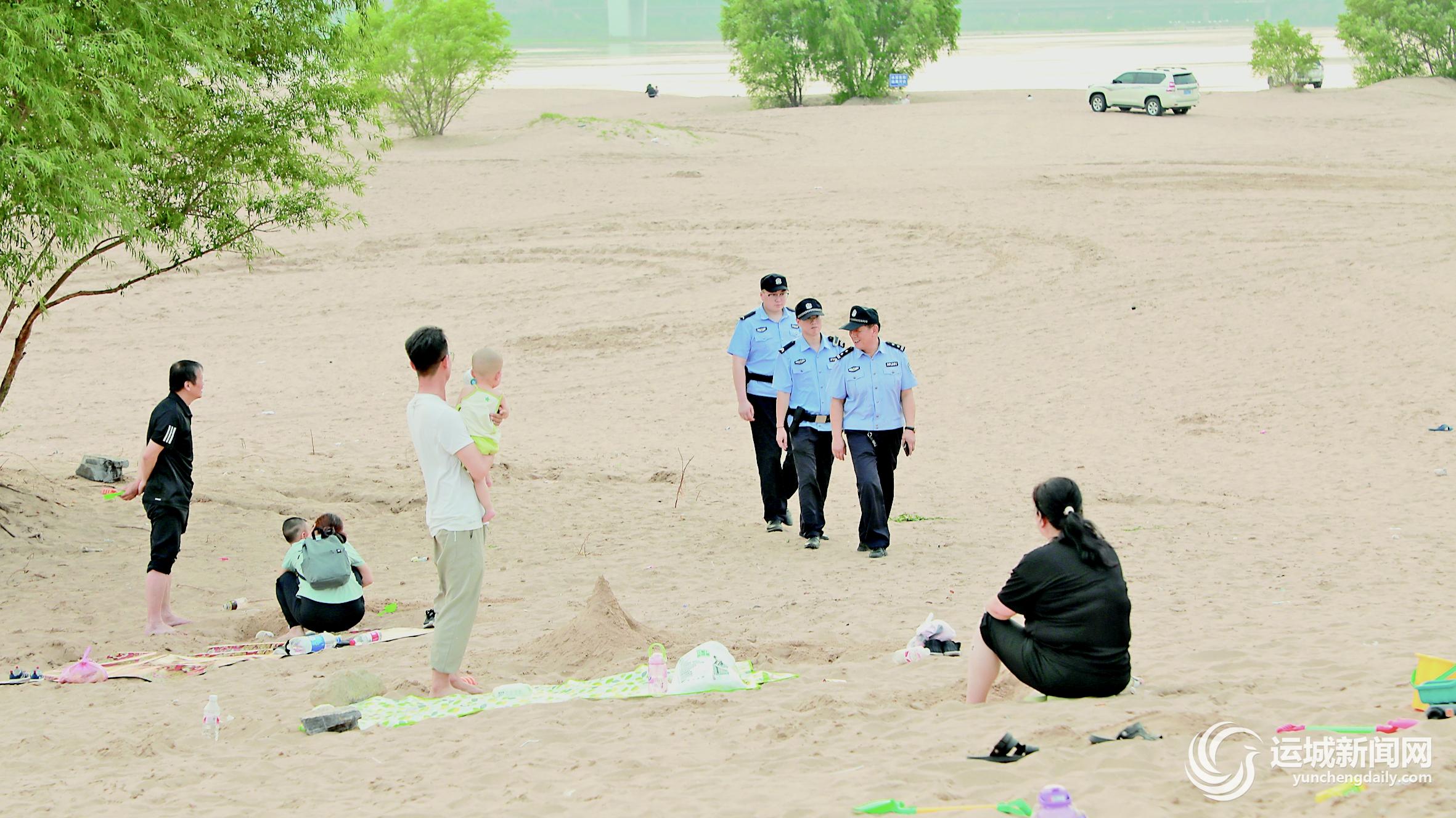 “各位游客请注意:黄河边禁止游泳、垂钓、烧烤等。”“这位游客,河边岸堤湿滑,危险,请注意安全!”“师傅,黄河的鱼可不兴捕。”6月29日下午,在黄河一号旅游公路河津段“浪漫沙滩”,河津市公安局清涧派出所民警在巡逻过程中,发现一些隐患,及时提醒游客。