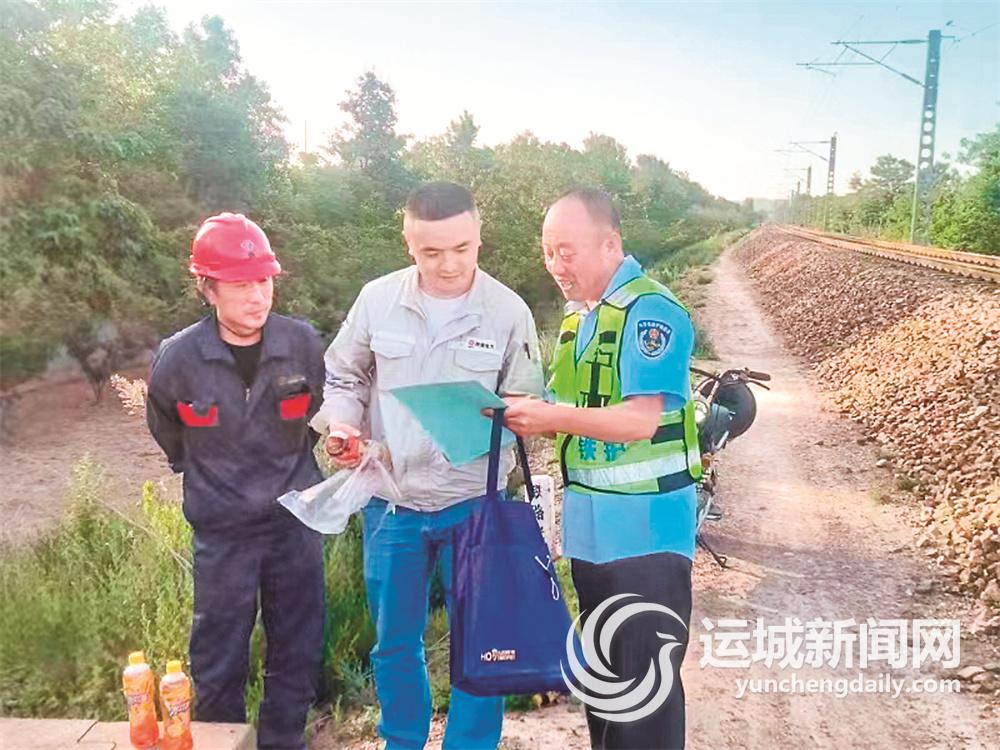 运城护路系统队员在铁路沿线开展宣传活动。