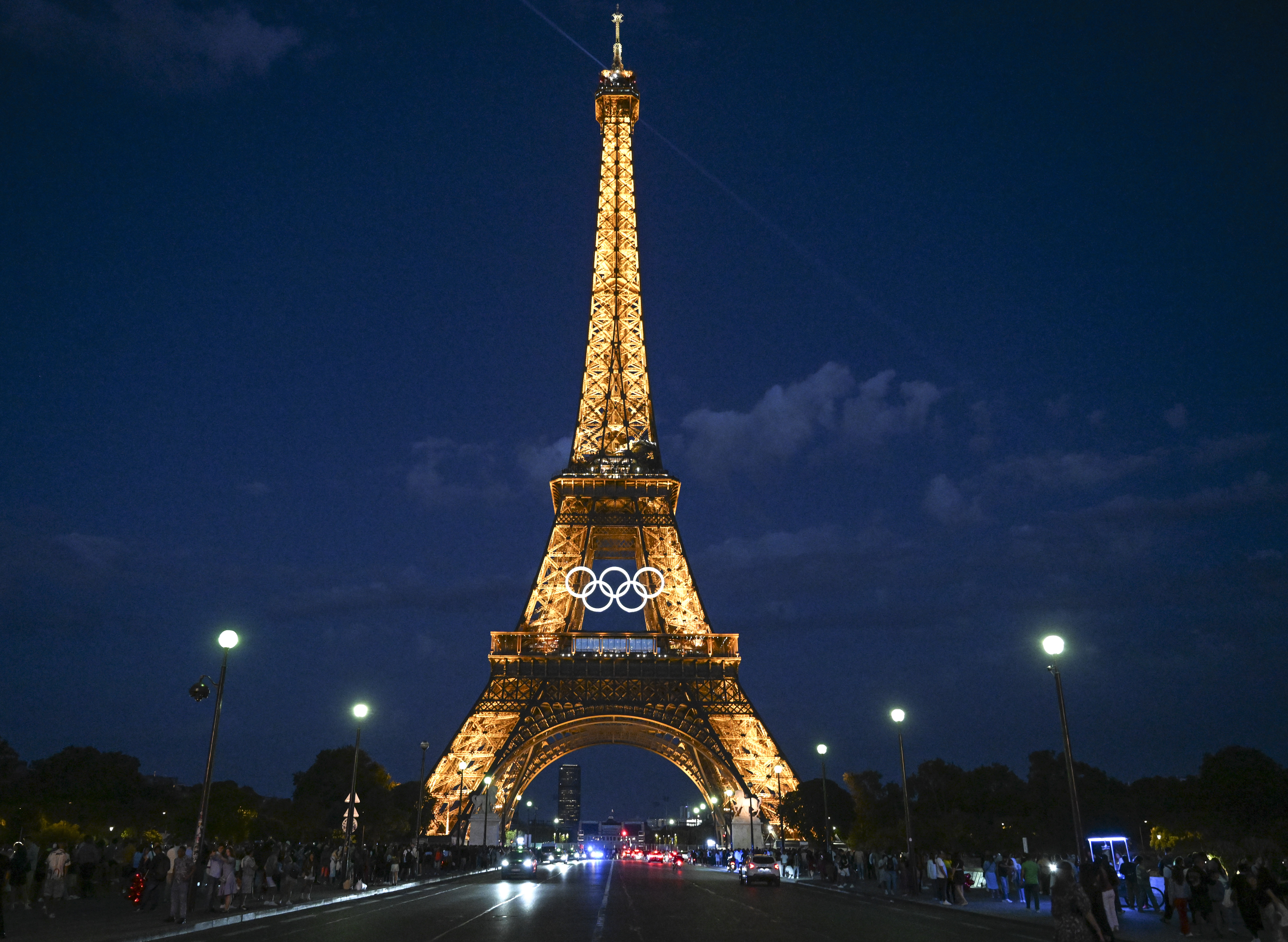奥运五环标志于6月7日亮相巴黎地标性建筑埃菲尔铁塔,每个环直径约为9米,整体造型长29米、高13米。白天为彩色五环,夜晚则闪耀白色光芒,为铁塔增添了别样风采,吸引广大市民和游客驻足观看留影。