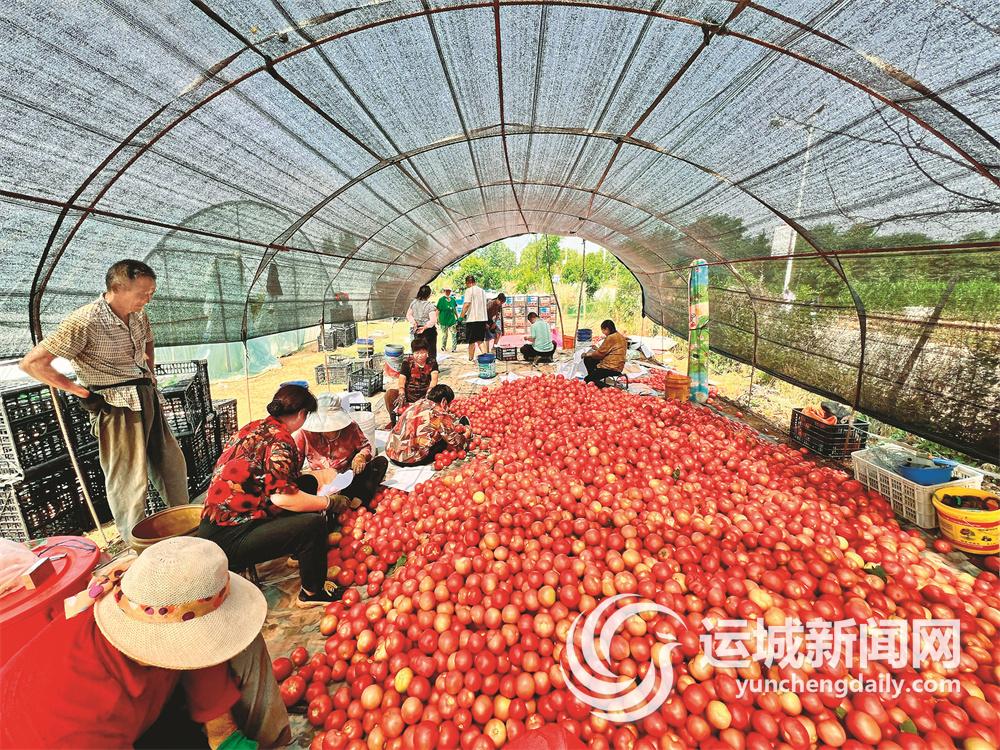 7月2日,平陆县张店镇陈张村菜农在分拣西红柿。近年来,陈张村通过建基地、延链条、育集群、树品牌,不断调整优化产业结构,大力发展高产、高效、优质的蔬菜产业,有效促进农民增收。 特约摄影 郝 健 摄