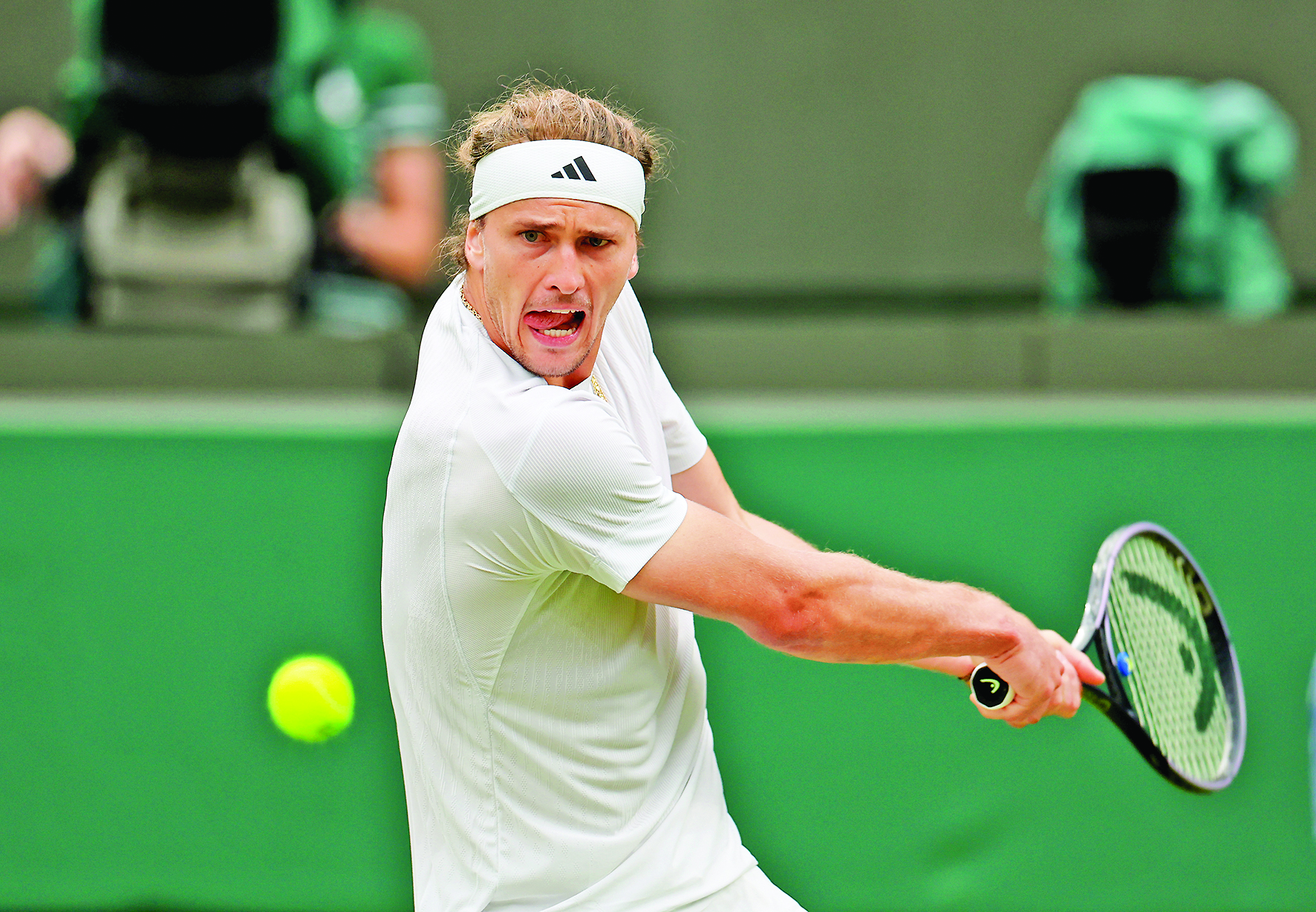 7月2日,兹维列夫在比赛中回球。当日,在英国伦敦举行的2024温布尔登网球公开赛男子单打首轮比赛中,德国选手兹维列夫3比0战胜西班牙选手巴埃纳,晋级下一轮。 新华社记者 李颖 摄