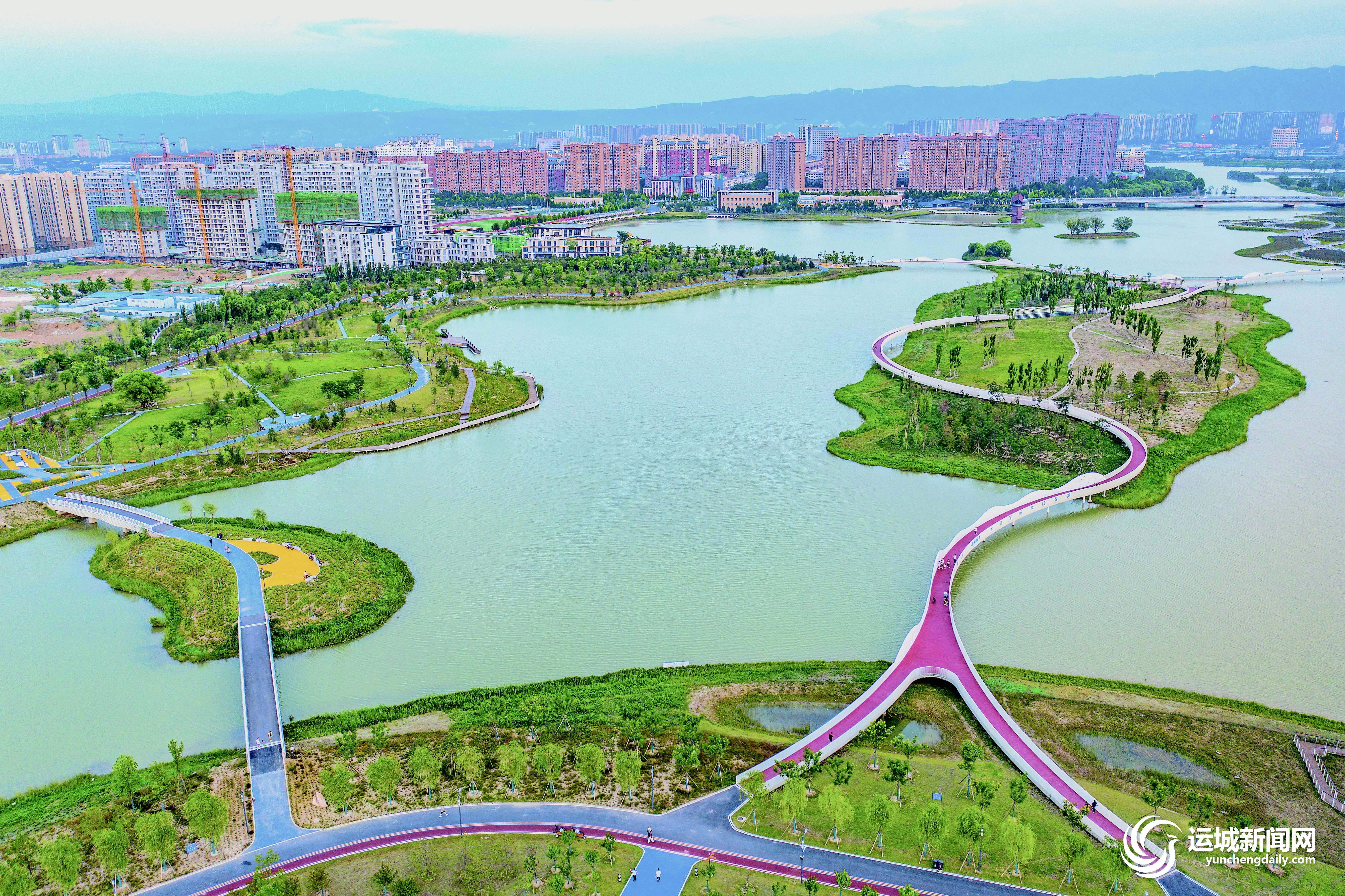 一泓清水穿城过。官道河水系是贯穿我市中心城区南北的重要生态廊道。官道河生态修复与整治工程北起官道河盐湖区阳倦闸,向南穿越黄河金三角(运城)创新生态集聚区,连接樊村水库、安邑水库、八一水库、韩信沟水库,最终与鸭子池相连,形成“一河四湖”的中心城区生态走廊。目前,官道河生态修复与整治工程樊村水库北段基本完工,已于近日对外开放试运行。