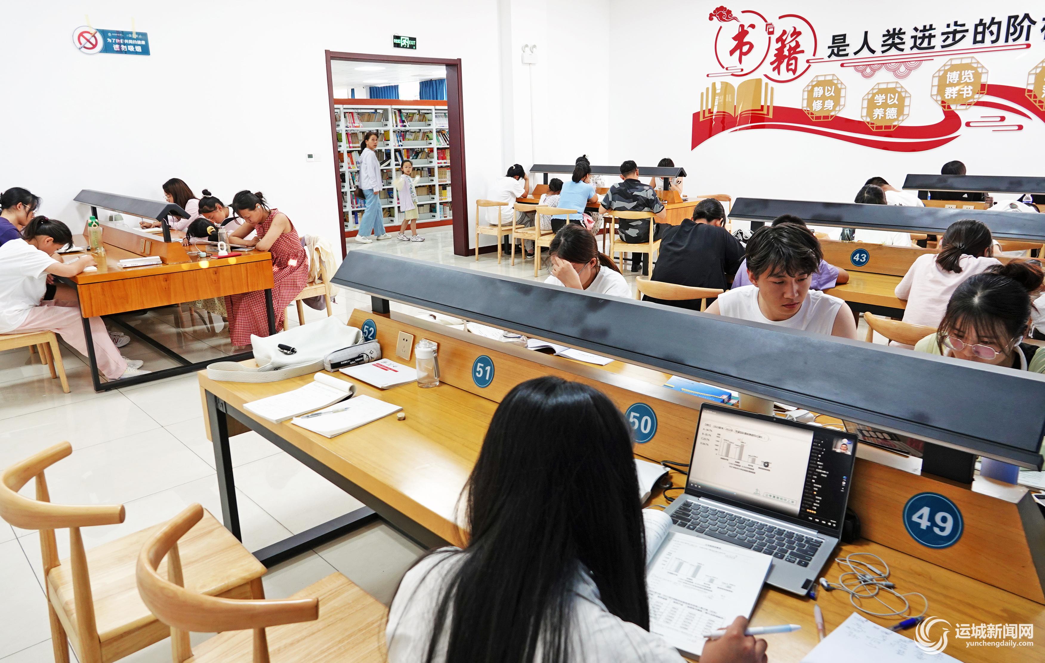 7月2日,众多读者在新绛县图书馆品“书香”。