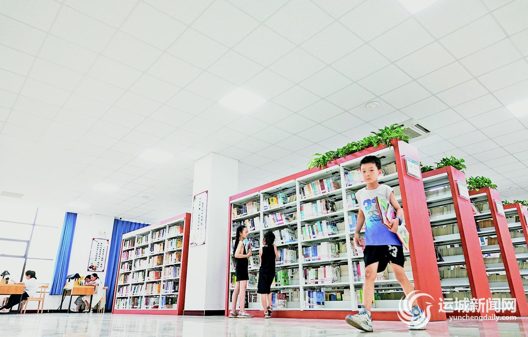 7月2日,两名小读者在新绛县图书馆寻“书香”。