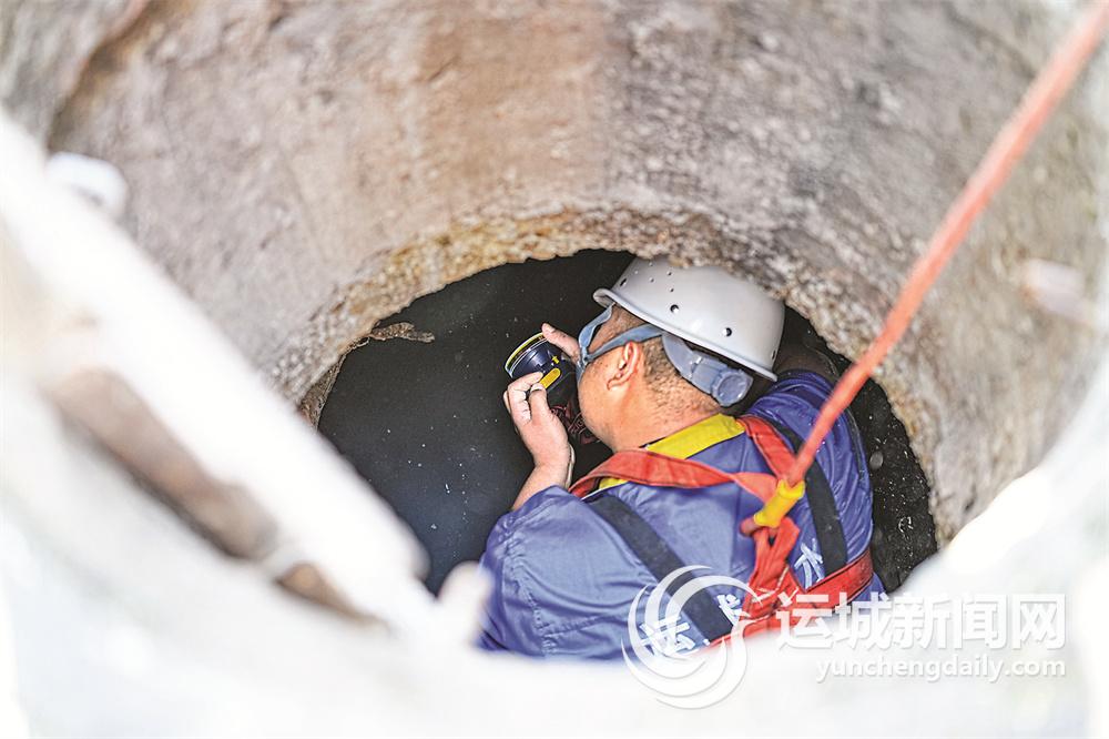 近日,在条山街留驾庄村村口附近,市城市管理局排水服务中心的排水抢险应急队队员们,围成一圈,守护着正在下井作业的队友樊兴国。几分钟后,樊兴国从井下爬出来说:“经过下井观察,排水设施状况良好。”