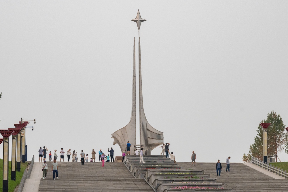 7月4日,游客在漠河市北极星广场游玩。