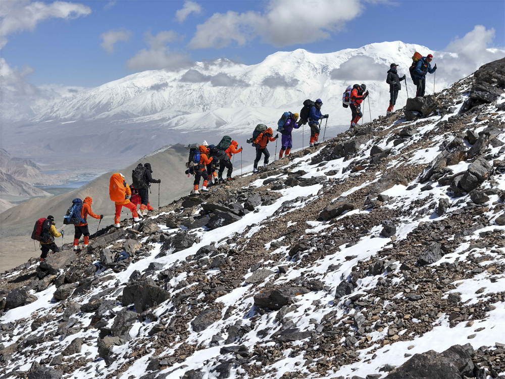 2024年新疆慕士塔格峰登山季已经开启。连日来,首批攀登者按计划组织拉练,熟悉山坡地形,适应高海拔,为登顶积极准备。 新华社记者 胡虎虎 摄