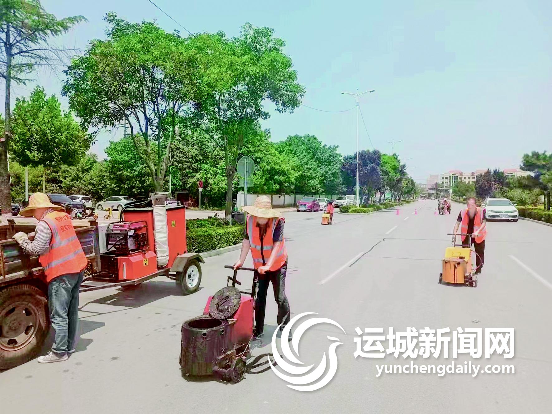 运城晚报讯(记者 祁克宁 通讯员 尚张茹)为进一步优化市民出行环境,近日,永济市市政公用服务中心抓住夏季道路养护黄金时期,积极引进新设备、采用新技术和新材料,集中对市区道路裂缝病害进行填灌修补(下图)。