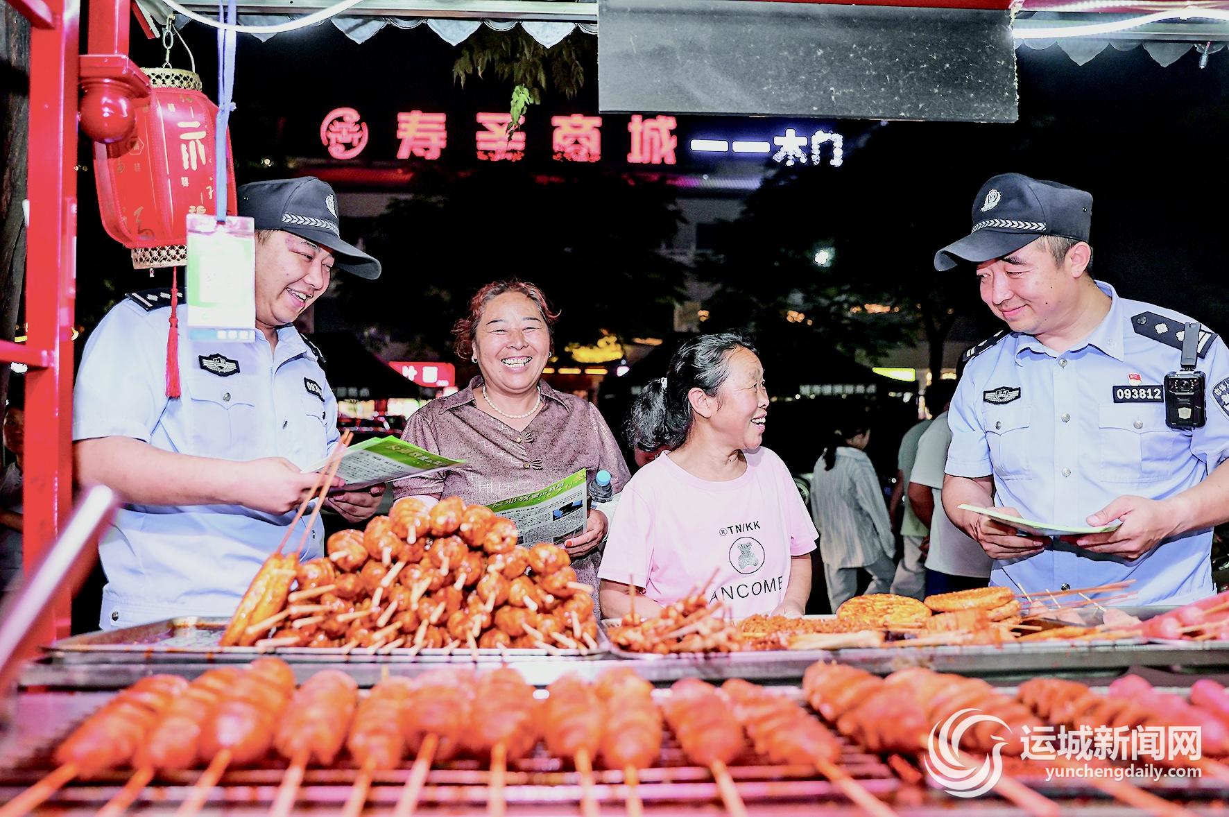 “我们就在周边巡逻,有什么突发情况随时向我们反映。”“看好自己的包和贵重物品,走的时候都检查一下。”7月5日,芮城县公安局古魏派出所民警张宸华像往常一样带领巡逻队伍在美食街开展巡查宣防整治,向在路边摆摊的商家和群众叮嘱。