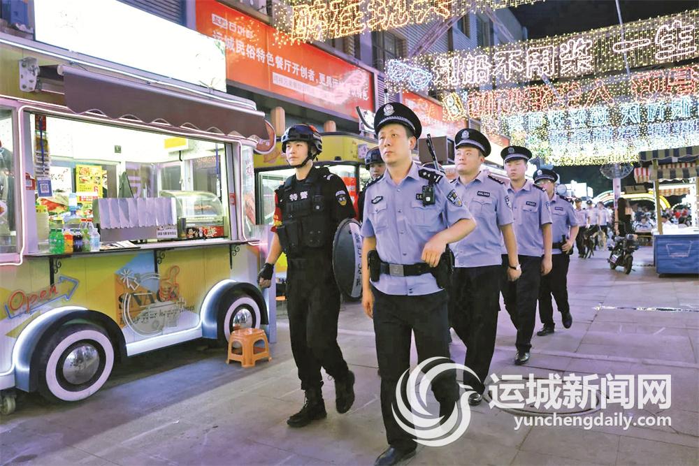 6日晚,盐湖公安分局加强对繁华商贸区、广场等重点区域人流量大的场所进行巡逻,仔细查看周边治安环境和各商铺的安全环境。