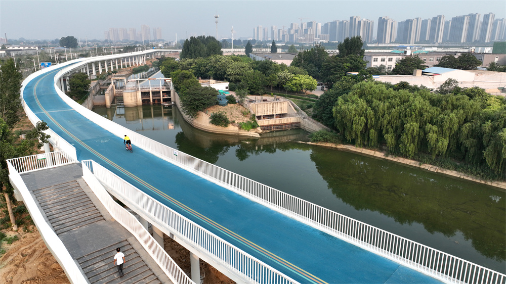 近年来,河北省石家庄市依托滹沱河、环城水系等优质景观资源,通过架设桥梁、提升景观和完善绿地等措施,打造景美、智游、畅达的城市绿道健身体系,同时加强环城绿道与中心城区串联衔接,方便市民无障碍步行或骑行。据介绍,石家庄市环城绿道工程全长101公里,目前该工程北、东、南线已竣工向公众开放,西线正在加紧施工。 新华社发