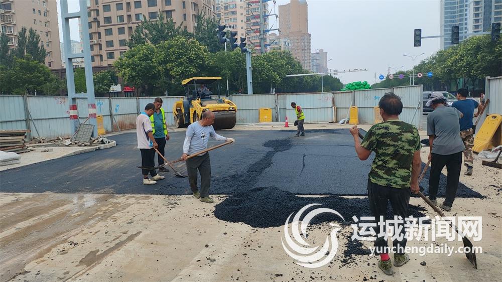 运城晚报讯(记者 祁克宁 见习记者 樊慧敏)7月11日上午,记者在市区河东东街和韩信路交叉口看到,市市政公用服务中心工作人员在操作摊铺机和压路机,对几日前发生路面塌陷的地方进行铺油。