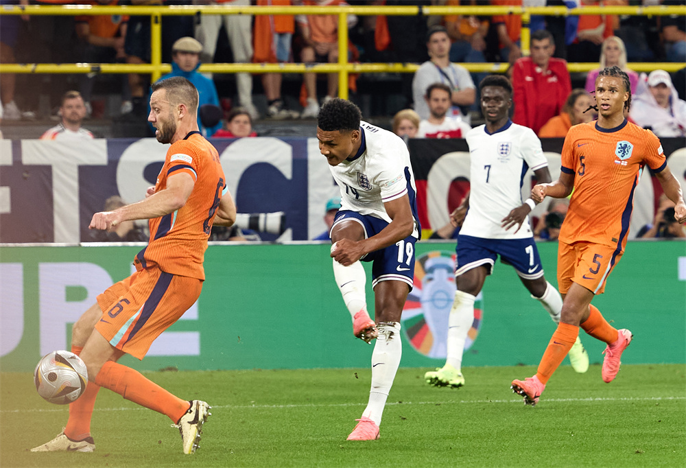 当日,在德国多特蒙德进行的2024欧洲足球锦标赛半决赛中,英格兰队2比1战胜荷兰队,晋级决赛。