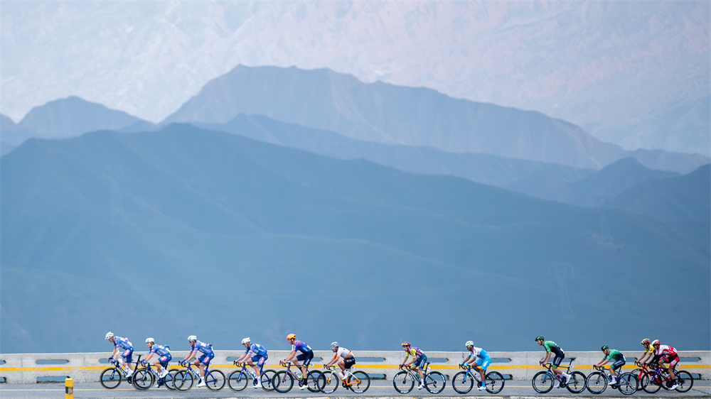 当日,第二十三届环青海湖国际公路自行车赛进行第四赛段贵德至共和的角逐。最终,西班牙布尔戈斯BH车队车手马里奥·阿帕里西奥获得赛段个人冠军。 新华社发(潘彬彬 摄)