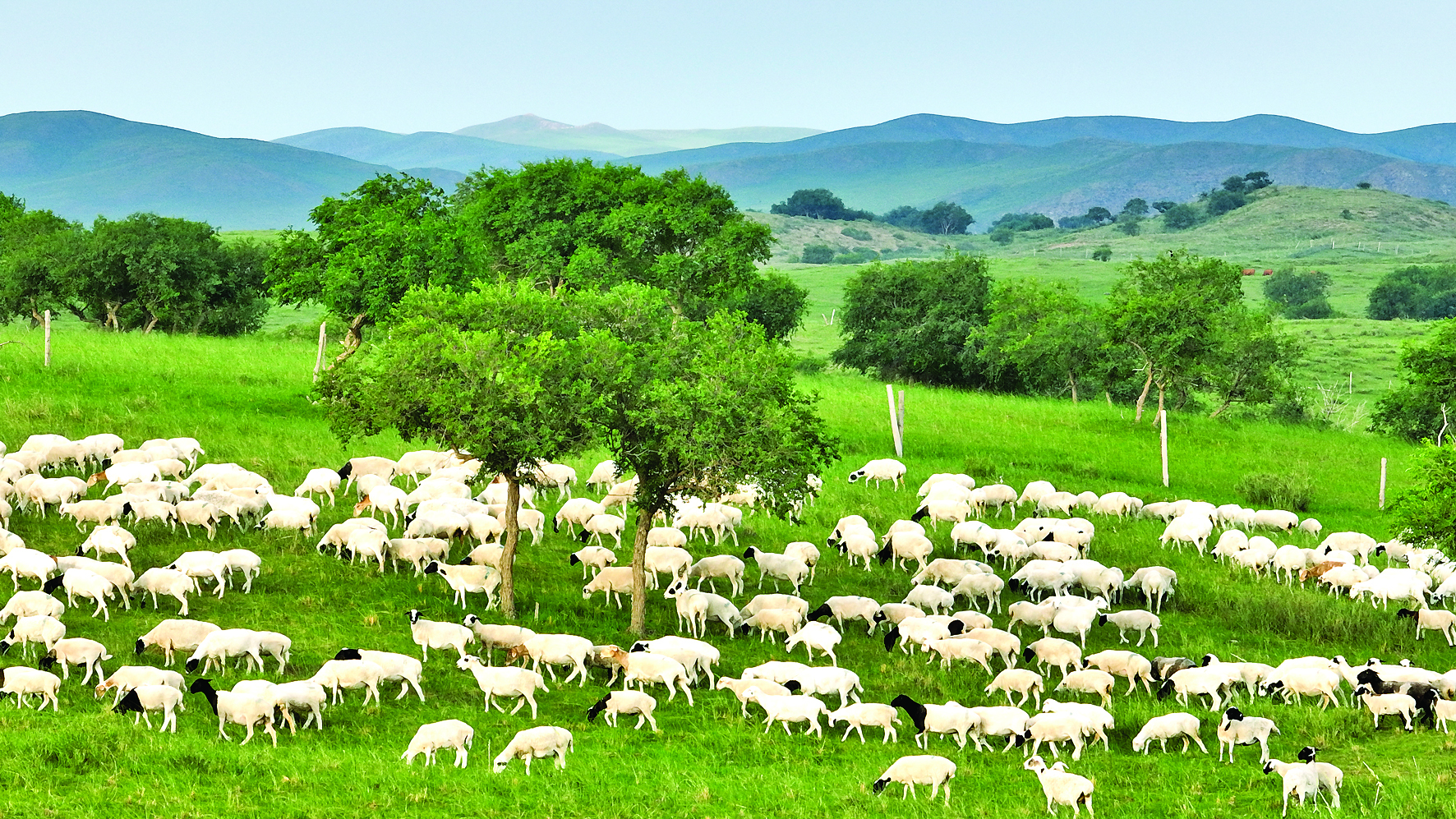 近日拍摄的锡林郭勒盟白音锡勒牧场上的羊群。