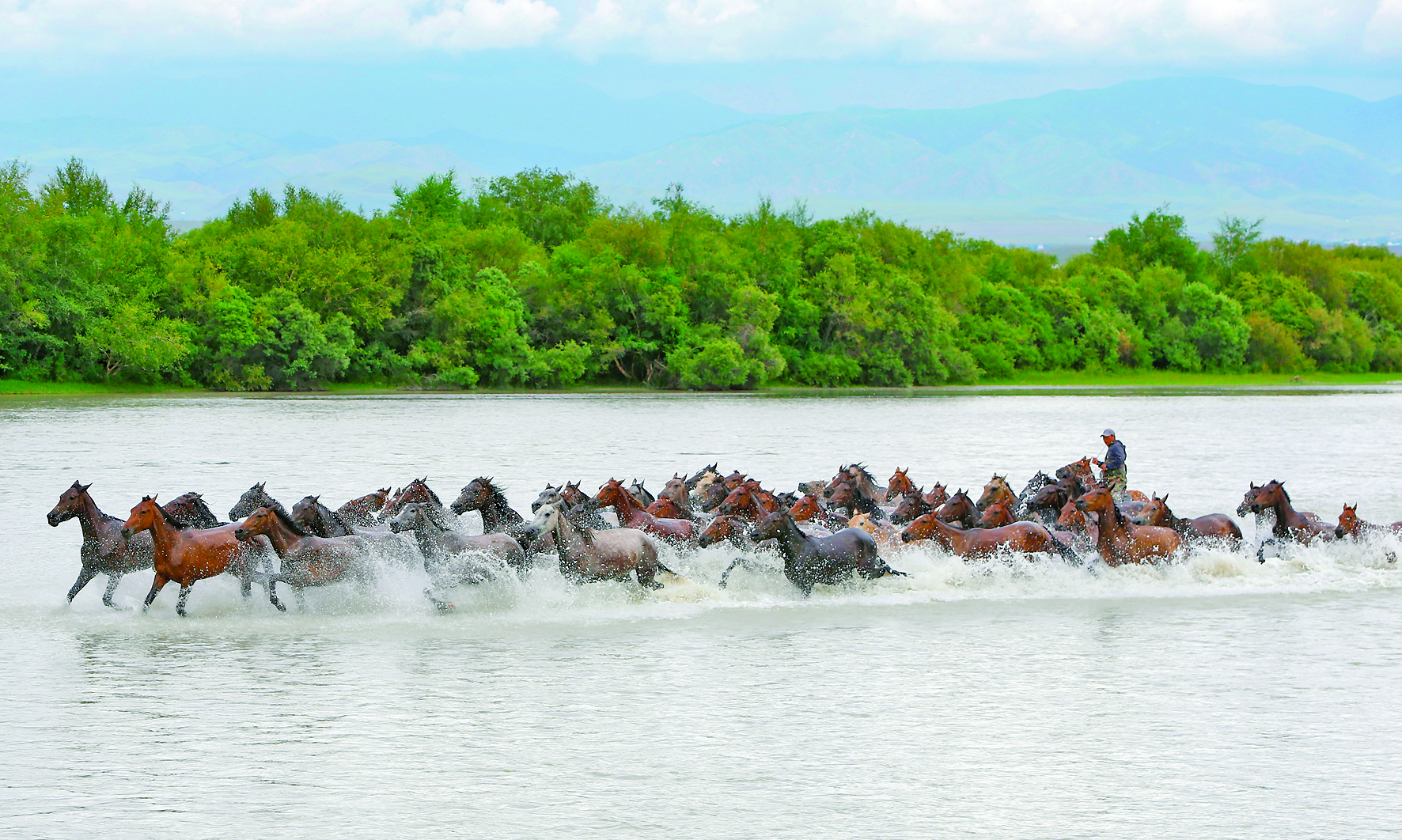 这是近日在新疆昭苏湿地公园拍摄的天马浴河。