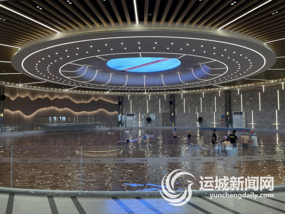 你只需躺平,闭眼感受自己的身体把水面压出一个人形,水的巨大托举力将你轻轻托起,缓缓飘移;当然,你也可以睁眼欣赏头顶天花板上巨大的圆形LED屏幕,不间断播放的运城壮丽山河及历史文化宣传片,会让你忘记自己身在何处。