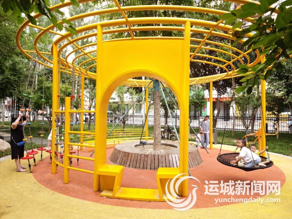 小憩一会儿后,来到明瑞园小区门口的“口袋公园”,看到几名市民正带着孩子在游乐设施处玩耍。黄色的圆形钢架结构,使这处游乐设施格外耀眼,每天都有许多孩子来此游玩。“对于孩子来说,家门口能有配套的游乐设施真是再好不过了。在这里,孩子不仅可以接触到大自然,还能认识不少新朋友。”市民黄女士说。