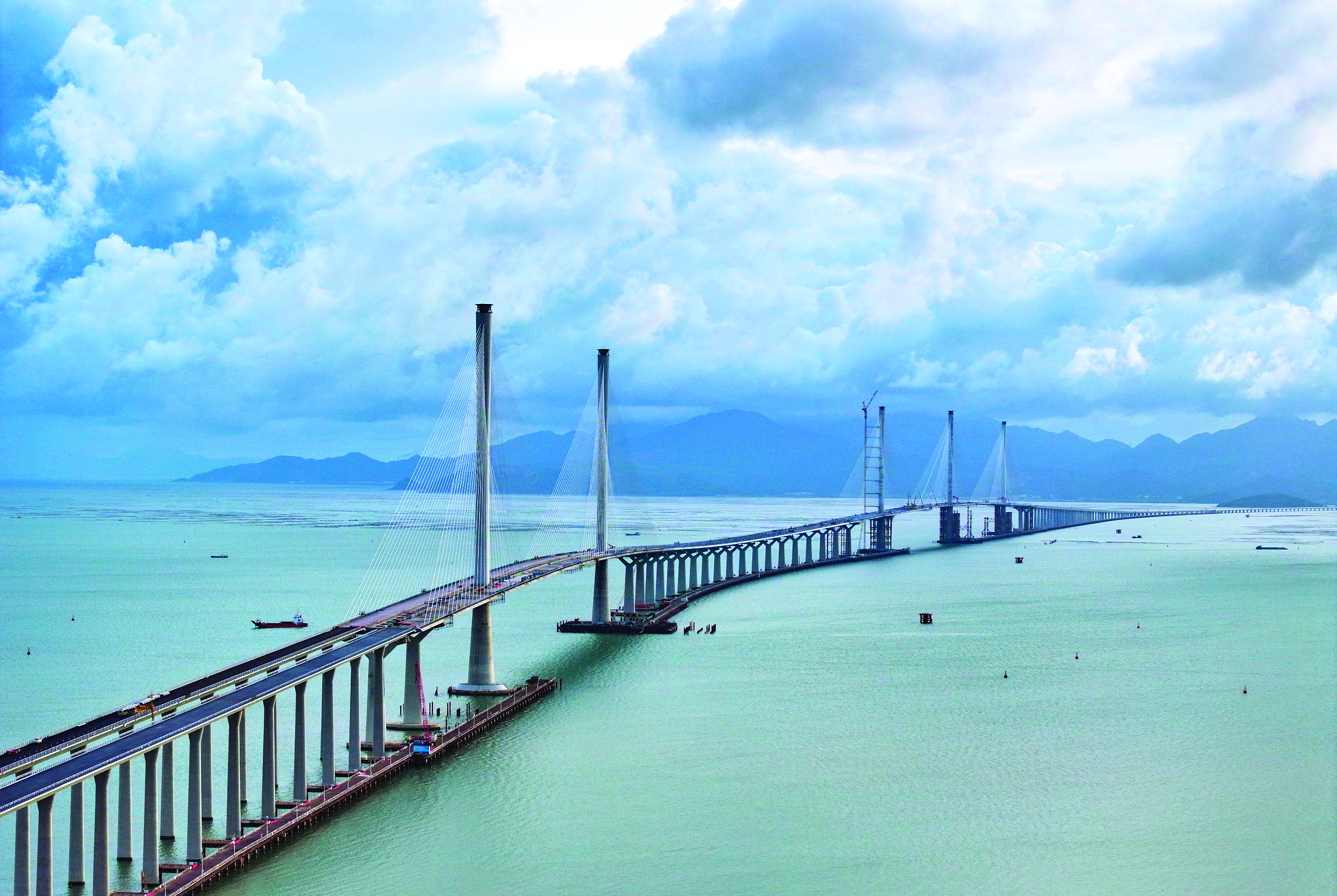 黄茅海跨海通道是粤港澳大湾区又一超大型跨海工程,连接珠海市和江门市,线路全长约31公里。跨海段由高栏港大桥和黄茅海大桥两座主桥组成,项目预计2024年年底通车。