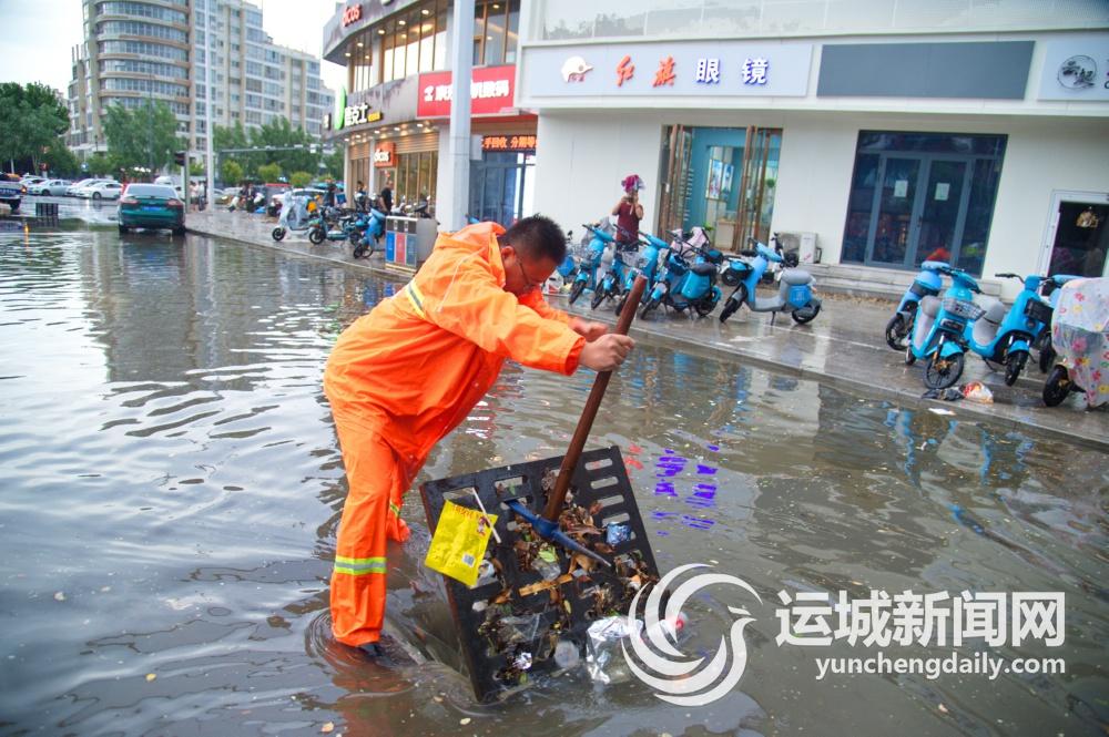 当日17时30分左右,在中心城区学苑路华林逸墅小区门口可以看到,该路段已有积水。市城市管理局排水服务中心、综合行政执法队的工作人员正在路口值守,并打开雨水箅进行人工助排。为加强部门联动,让排涝工作更加快速高效开展,今年市城市管理局成立了由排水、城管、环卫等部门组成的防汛排水抢险工作领导小组,明确责任分工。此次降雨前,各部门已提前待命,在责任区值守。其中,环卫部门负责清理雨水箅,执法队部门协助进行人工助排及道路管制。