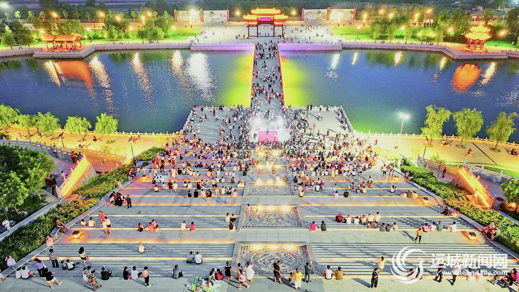 7月14日晚,市民在稷山县大佛文化园赏景纳凉。
