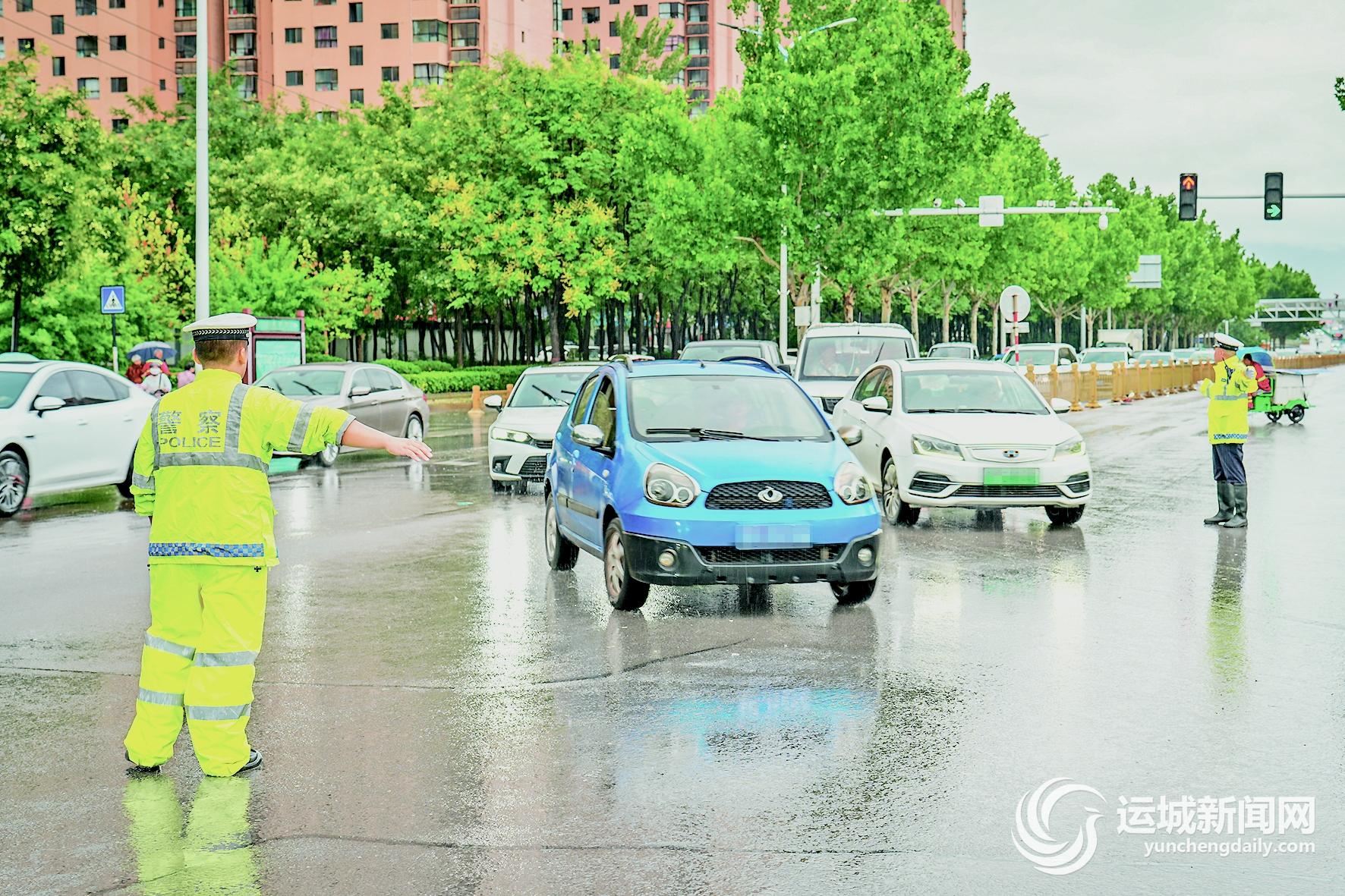 交警在学苑路与条山东街路口疏导交通。本报记者 陈方斌 摄
