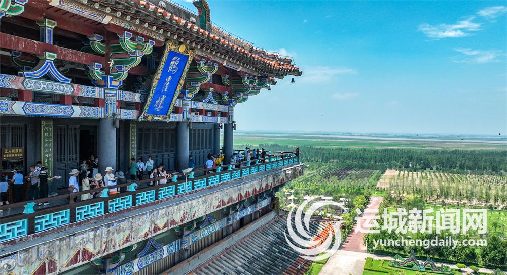 7月21日,在永济市鹳雀楼景区,来自全国各地的游客在鹳雀楼上远眺黄河。进入暑假旅游旺季以来,我市各大景区人气持续攀升。
