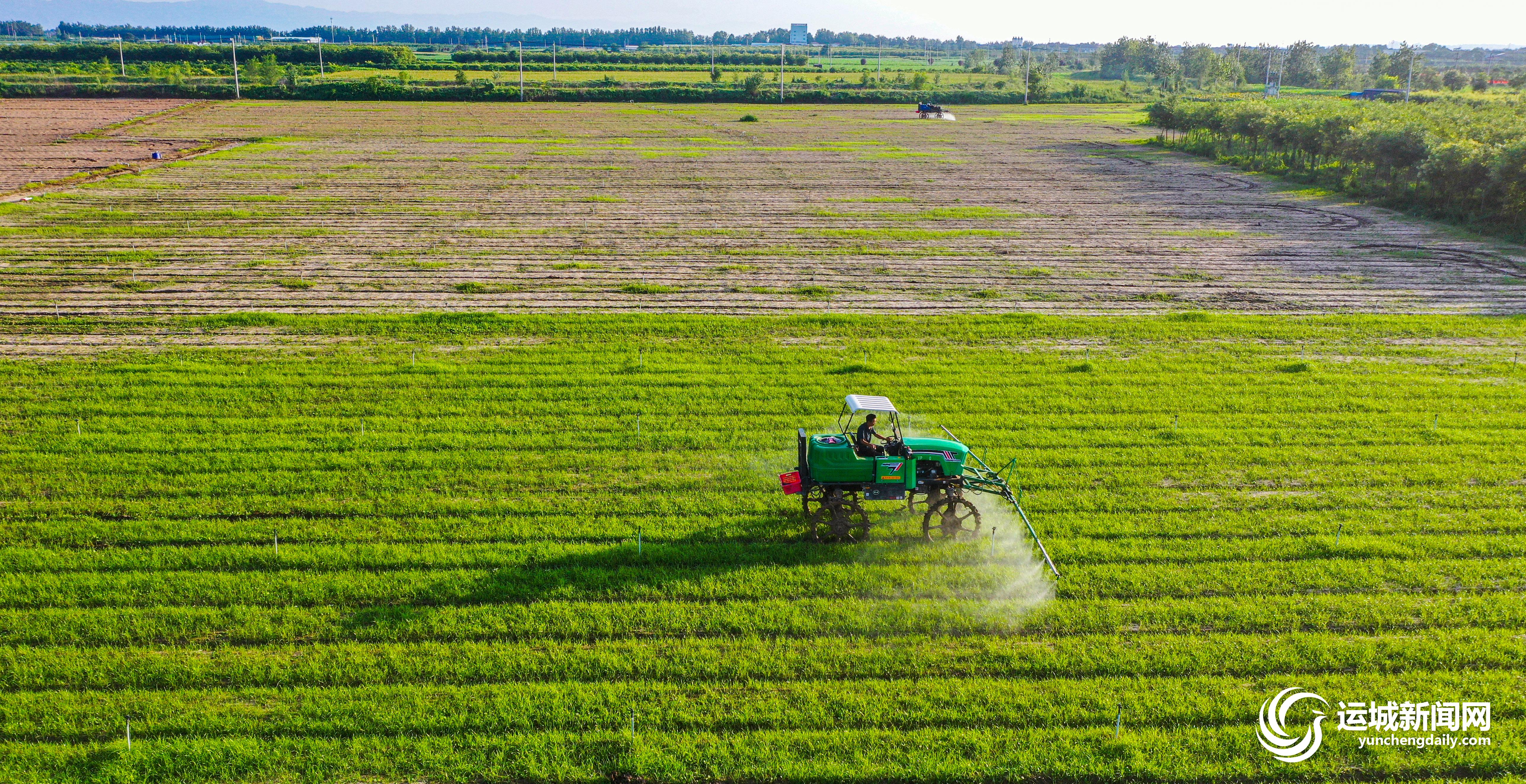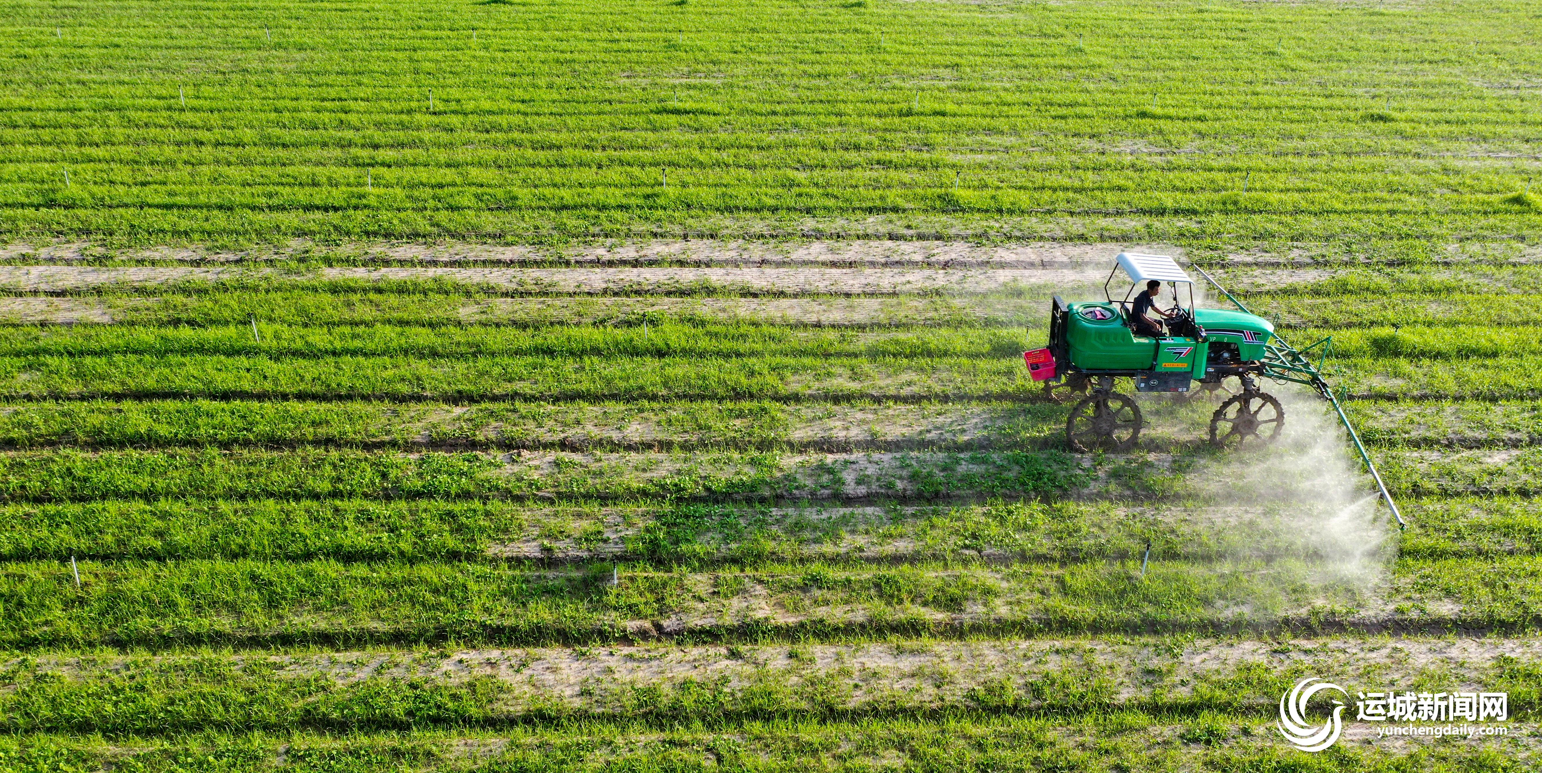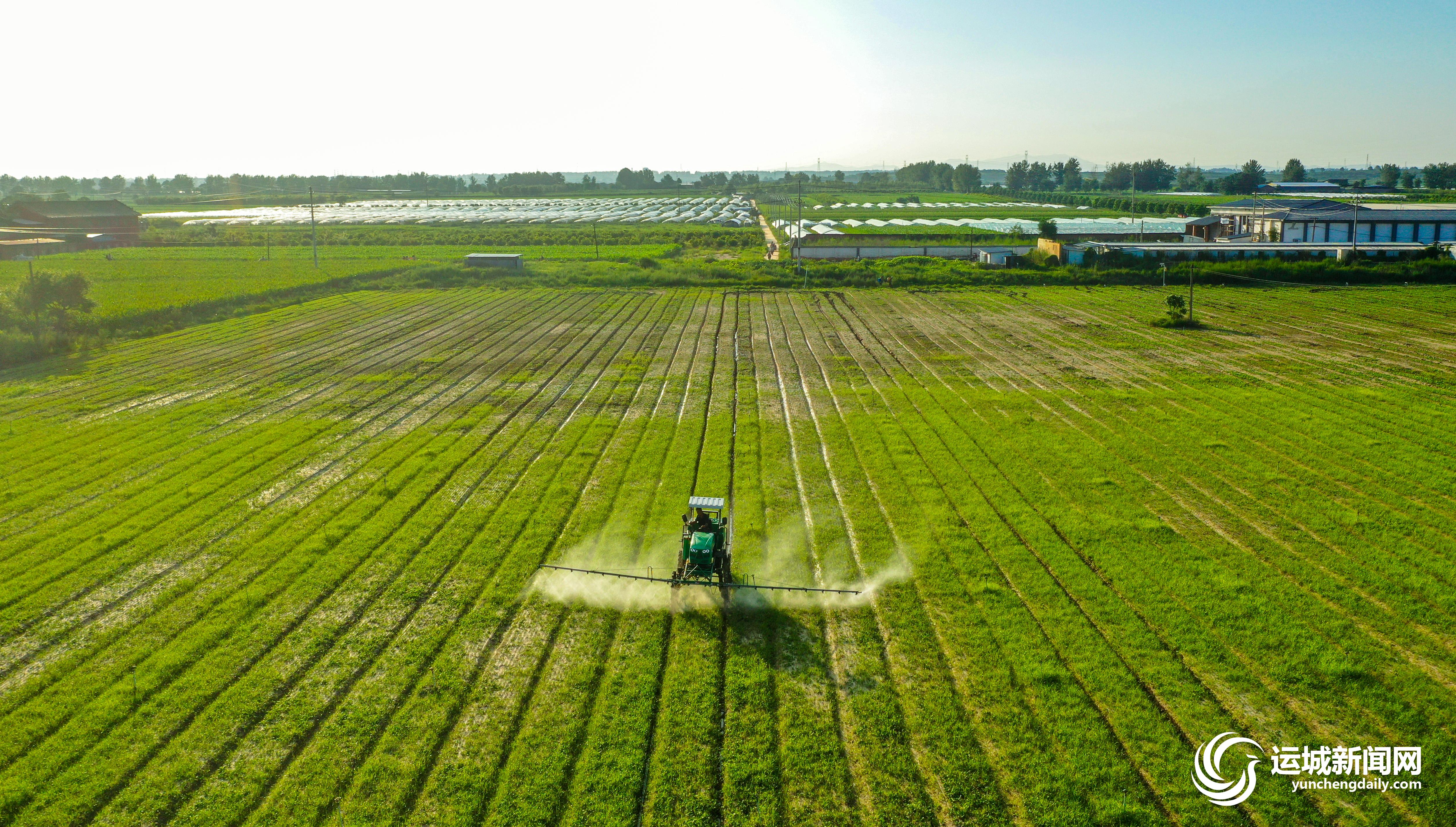 7月19日,夏县世邦农业开发有限公司供港蔬菜基地,农机手驾驶大型机械进行喷防作业。当前,该公司正抓紧对种植的菜心进行浇水、追肥、除草、防虫等管理,确保秋季蔬菜供应。
