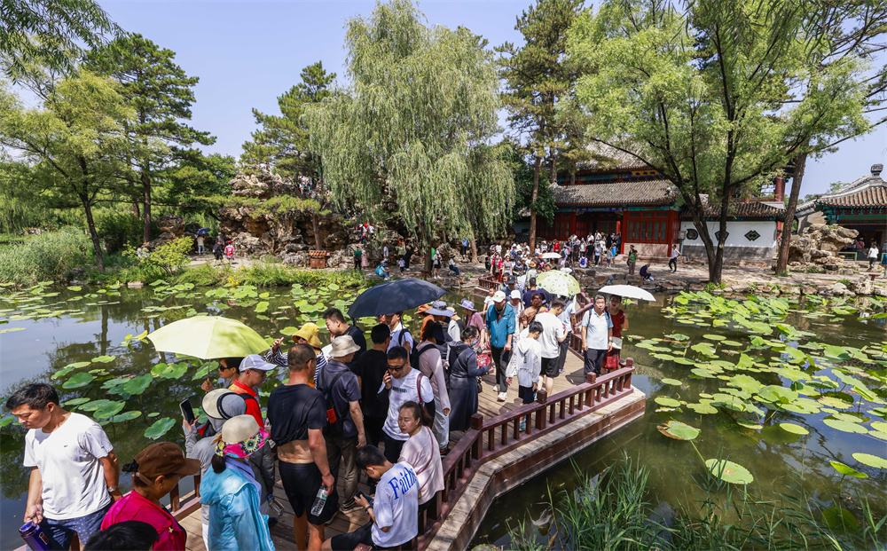 暑期,旅游胜地河北省承德市迎来旅游旺季,各地游客纷纷前来,游览世界文化遗产避暑山庄、体验特色民宿,领略皇家园林之美,尽享山城魅力。