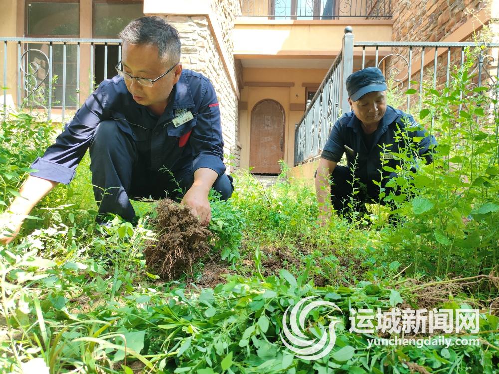 除了指导居民种植花花草草、瓜果蔬菜以外,园林工还负责清理小区空置庭院的杂草、落叶,为居民营造干净、整洁的人居环境。