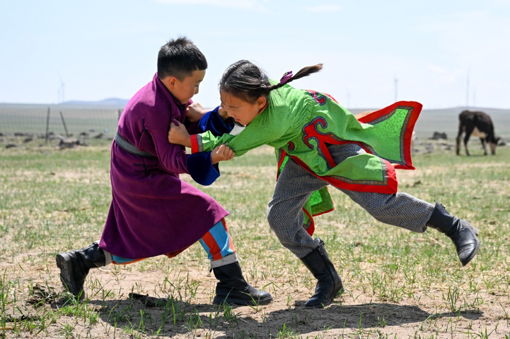 近日,以“相约草原·遇见那达慕”为主题的内蒙古第34届草原那达慕在内蒙古锡林郭勒盟开幕。那达慕上,牧民们拉着马匹、身穿搏克服、手持弓箭来此一展身手,参加“男儿三艺”的比赛。“男儿三艺”是蒙古族传统体育项目,包括赛马、搏克和射箭,是每年那达慕上的固定比赛项目,更是牧民们日常生活的重要组成部分。