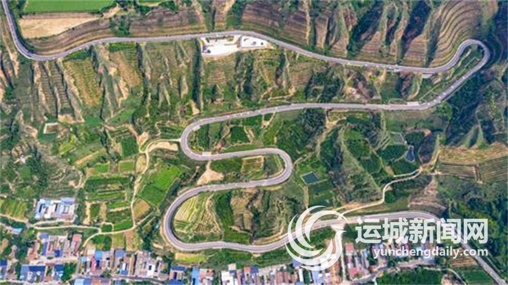 7月23日拍摄的黄河一号旅游路(芮城段)一段。从空中俯瞰,公路盘旋于青山之中,与农田、村庄相互映衬,十分壮美。