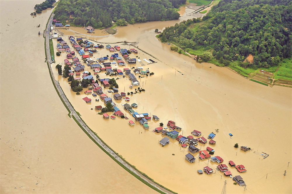 这是7月26日航拍的遭洪水侵袭的日本山形县户泽村。