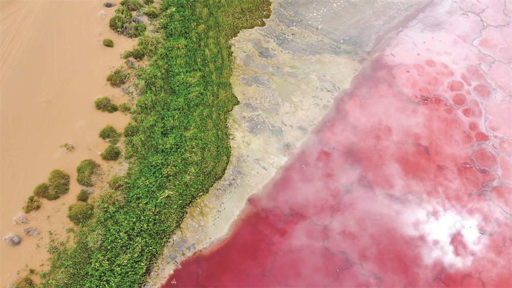 巴丹吉林沙漠中的红海子(2022年7月13日摄,无人机照片)。