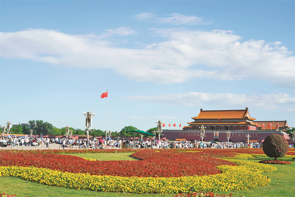 游客在位于“北京中轴线”上的天安门广场游玩(2023年7月9日摄)。 新华社记者 任 超 摄