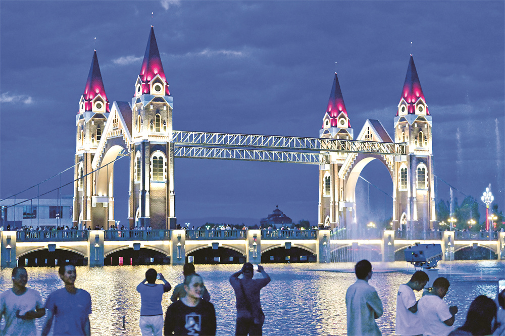 近日,游客在新疆布尔津县七彩河休闲旅游度假区观光游览。