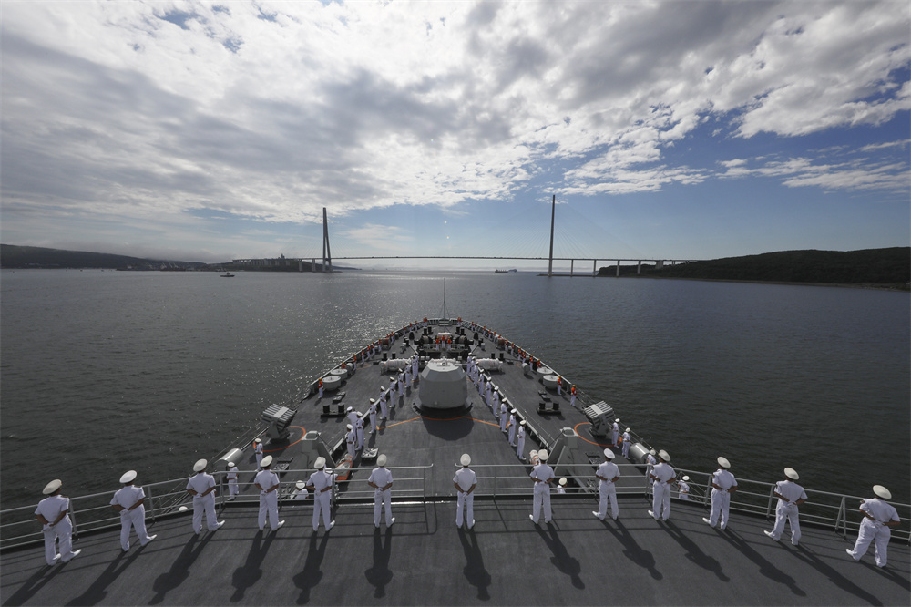 当地时间7月30日,执行远海实习出访任务的中国海军舰艇编队结束为期4天的友好访问,驶离符拉迪沃斯托克港。 新华社发(钟迪倩 摄)