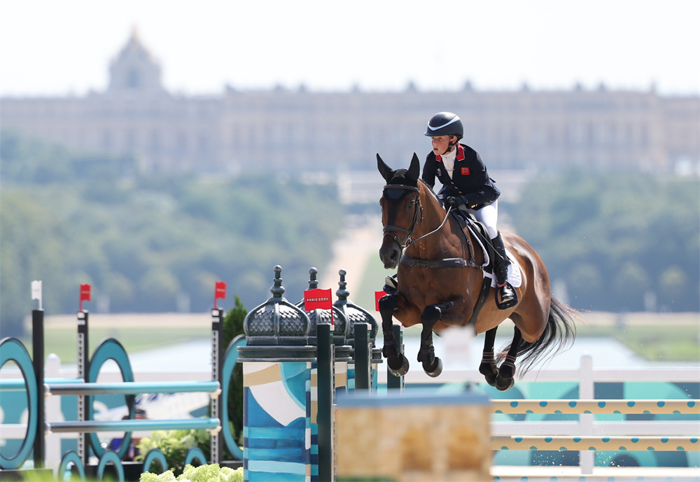 7月29日,英国队选手坎特在比赛中。当日,英国队夺得巴黎奥运会马术三项赛团体团体赛冠军。 新华社记者 杨磊 摄