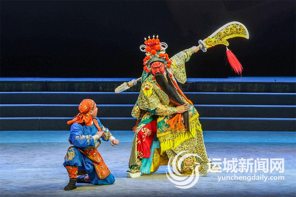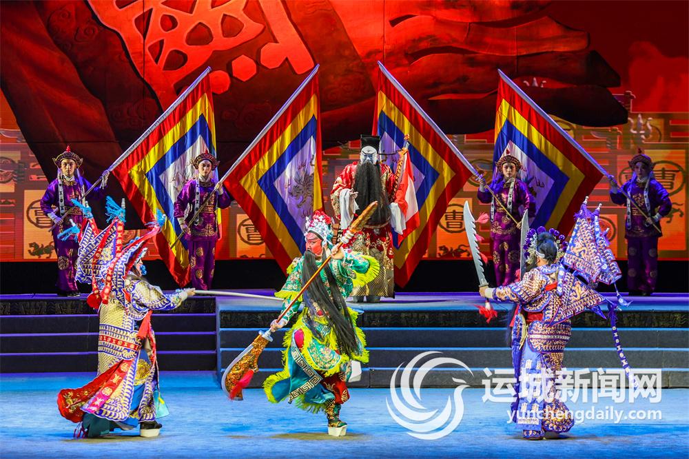 “东汉末年,天下大乱,战火纷飞,民不聊生,关公诞生在中条山下盐池岸边的河东解梁……”夏夜,中条山下,常平关帝家庙前,一场关公戏正精彩上演。伴随着雄浑有力的旁白,手持偃月刀、威风凛凛的关公威武登场,绚丽的舞台、气势磅礴的音乐以及蒲剧演员们精彩的演绎,瞬间将观众带回到那个金戈铁马、英雄辈出的三国时代。