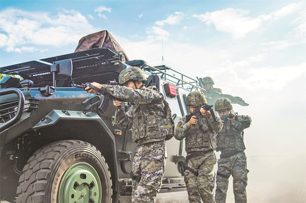 武警安徽总队蚌埠支队组织官兵开展人车协同课目实战化训练(7月30日摄)。新华社发(梁 旭 摄)
