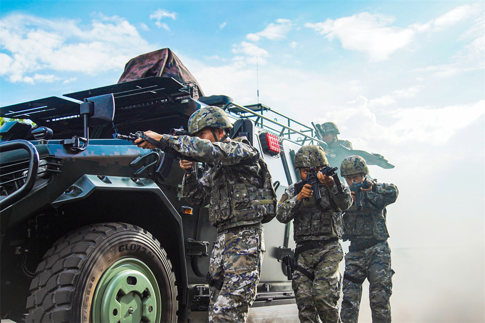 武警安徽总队蚌埠支队组织官兵开展人车协同课目实战化训练(7月30日摄)。