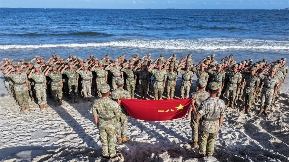 陆军第74集团军某旅利用训练间隙,组织官兵重温入伍誓词(7月31日摄)。