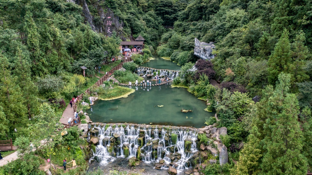 位于贵州省六盘水市钟山区的明湖国家湿地公园植被丰富,风景如画,吸引人们前来休闲游玩。