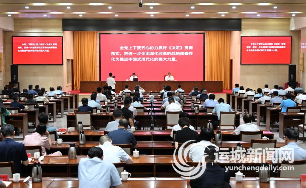 丁小强在主持时指出,全市各级各部门要以此次省委宣讲团来运宣讲为契机,把学习宣传贯彻全会精神持续引向深入,奋力谱写进一步全面深化改革的运城新篇章。要入心入脑学习,把学习贯彻全会精神与学习贯彻习近平新时代中国特色社会主义思想、党的二十大和二十届二中全会精神和习近平总书记对山西工作的重要讲话重要指示精神结合起来,准确把握新时代全面深化改革的成功实践和伟大成就,深刻领悟“两个确立”的决定性意义、坚决做到“两个维护”。要分层分类宣讲。加强对全会精神的宣传报道、权威解读,各级领导干部要带头深入分管领域、包联地方和基层生产一线开展宣讲,专家要深化理论研究阐释,帮助干部群众更好地理解全会精神,进一步凝聚改革共识、激发改革活力。要脚踏实地贯彻。把学习贯彻全会精神与做好当前各项重点工作结合起来,坚持从党中央和省委的改革方案中找方法、找钥匙,精心谋划实施一批具有运城特色的“小切口”改革,聚精会神抓发展、用心用情惠民生、坚守底线保安全,以钉钉子精神抓好各项改革落地落实,以实实在在的改革成效为高质量发展和现代化建设增添活力动力。